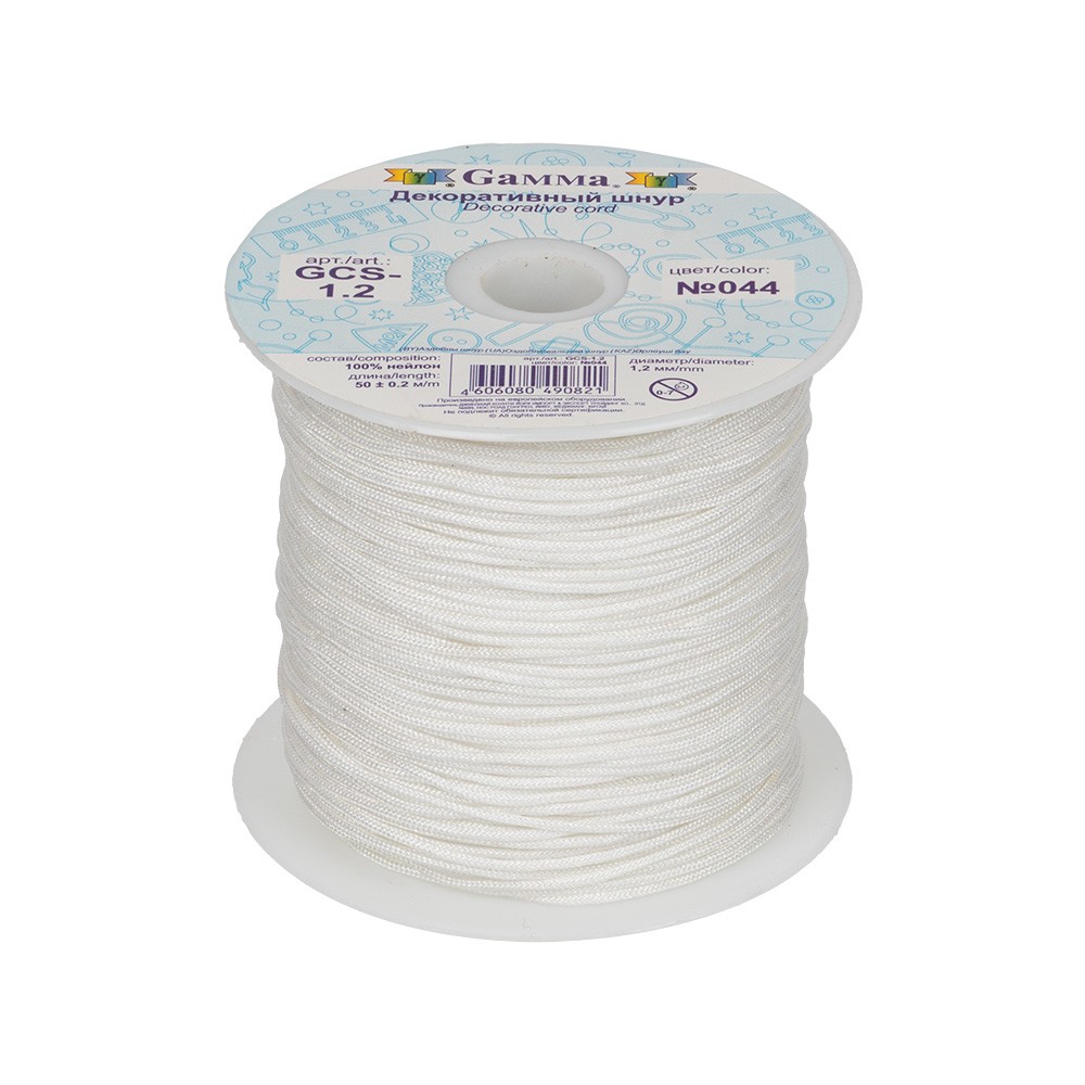 Шнур Gamma 1.2 мм GCS-1.2 декоративный 50 м ±0.2 м №044 белый (арт. GCS-1.2)