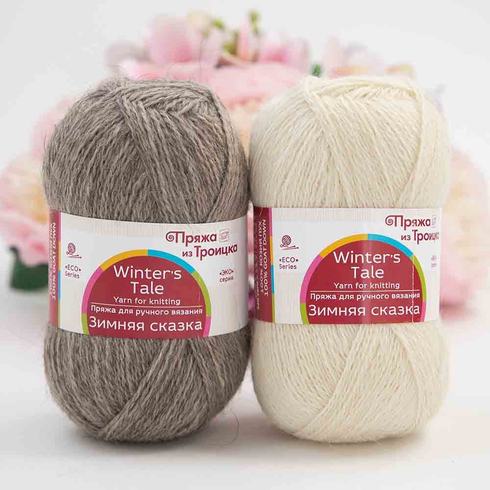 Нежная пряжа «Зимняя сказка» из Троицка специально создана для тонких и теплых палантинов, шалей и платков. Нить тонкая, скрученная из козьего пуха, в работе не расслаивается и не лезет. После ВТО начинает пушиться, набирает объем. Интересна в ажурах, рекомендована для легких пальто, пуловеров, кардиганов.