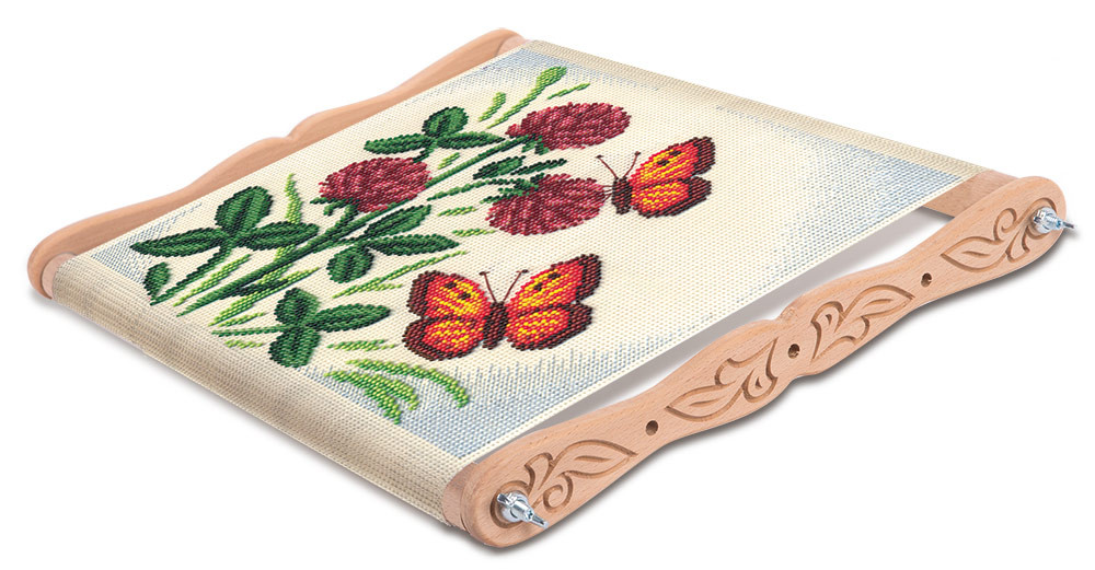 Пяльцы-рамка ТМ "Gamma" Premium арт. DPR-30 - укомплектованы надёжной крепёжной фурнитурой и удобным механизмом закрепления канвы. С помощью деревянной крепки канва легко крепится к поворотным валикам. Рамка с таким креплением канвы более прочная, натяжение вышивки получается значительно качественнее и ровнее. Размер рамки регулируется от 30*9 см до 30*30 см. Пяльцы выполнены из массива натуральной древесины - бук. На упаковке есть подробная инструкция по закреплению канвы.Деревянные детали украшены резной вязью.