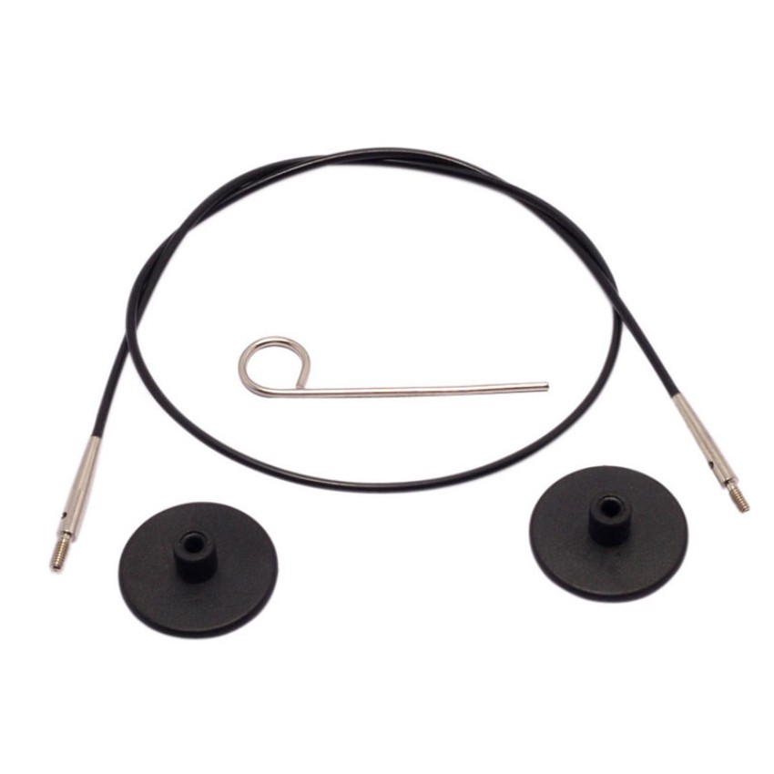 Набор: черный тросик 29см (50 см), заглушки и кабельный ключик KnitPro, 10562 (арт. 50)